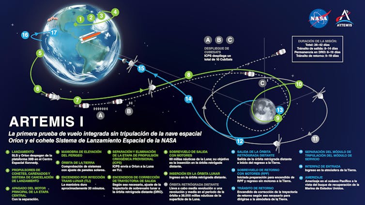 Artemis I dará una vuelta alrededor de nuestro satélite y probará tecnologías y procedimientos. Su regreso está previsto que sea el 10 de octubre, cuando amerizará en el Pacífico.